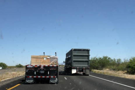 Jedenfalls werden wir ziemlich oft von Trucks überholt. Dabei sind wir in der ersten Stunde an mindestens 3-4 Verkehrskontrollen vorbei gekommen. In Arizona scheint es kein Tempolimit für LKWs zu geben und scheinbar auch weniger Verkehrskontrollen. Entsprechend geht es hier zu wie bei uns auf der Autobahn. Trucks überholen sich gegenseitig und halten alles auf. Häuser auf der Straße stören nicht. Ganz im Gegenteil. Das gehört in den USA einfach dazu.