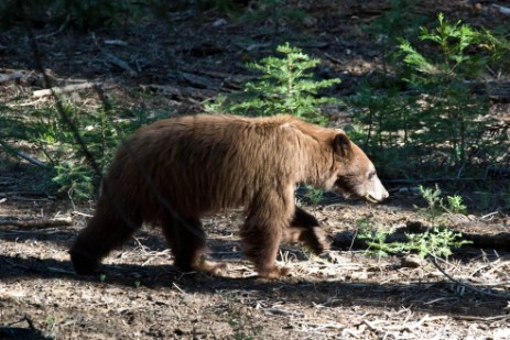 2007 hatten wir mehr Glück. Da waren wir am späten Nachmittag nur auf der Durchfahrt zum Tioga Pass und konnten mehrere Minuten einen jungen Schwarzbären beobachten, der sich von den Besuchermassen nicht hat stören lassen (Bild links). Aber da war auch kein Wildlife-Management im Einsatz.